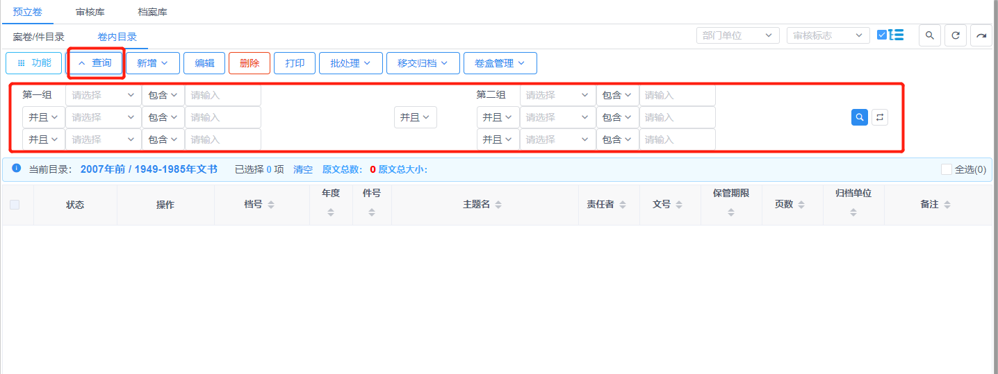 【卷内目录】页签下即所有卷内条目,查询功能同上,见图11-40。