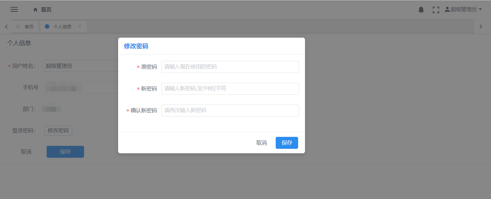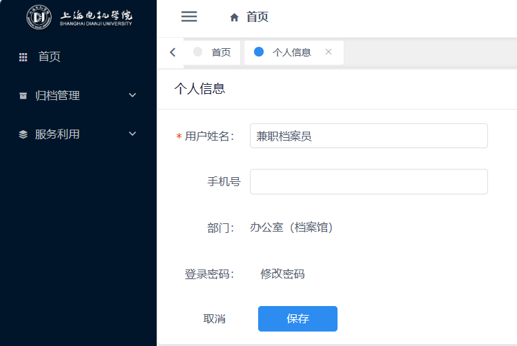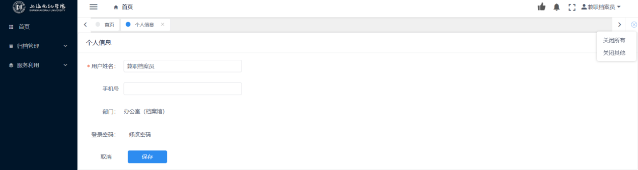 点击首页右上方的【用户姓名】-【个人信息】,可进行用户信息修改。见图11-3、图11-4: