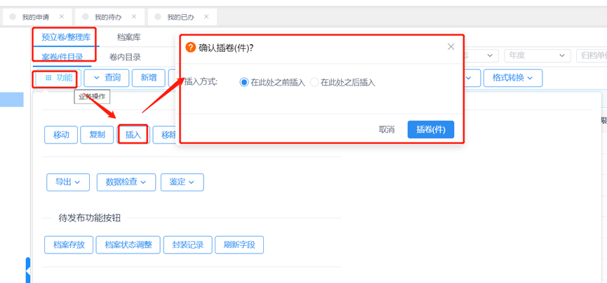 ②卷内目录插入(需要在案卷目录条目对应的卷内使用)