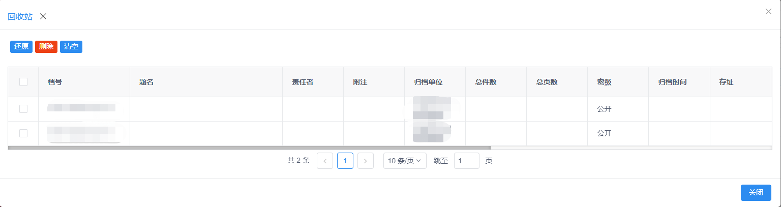 删除的数据在回收站中可查看,勾选后点击【还原】按钮可还原至档案条目中,见图11-112。